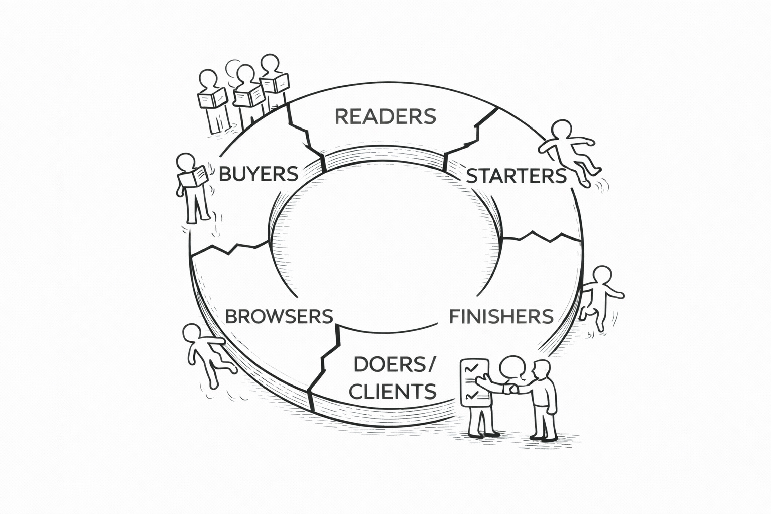Use the following list so you can self diagnose where the breakdown is. Figure out where your people are stopping and work to fix your Flywheel.