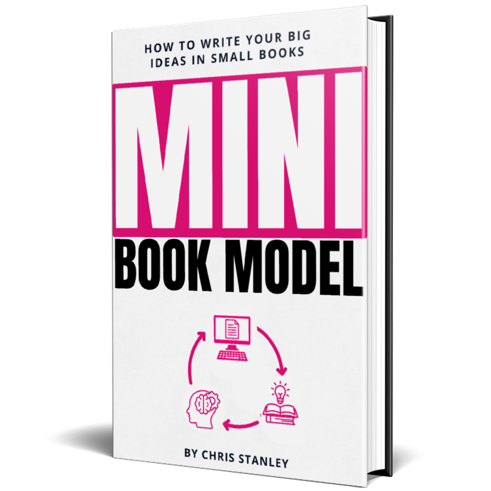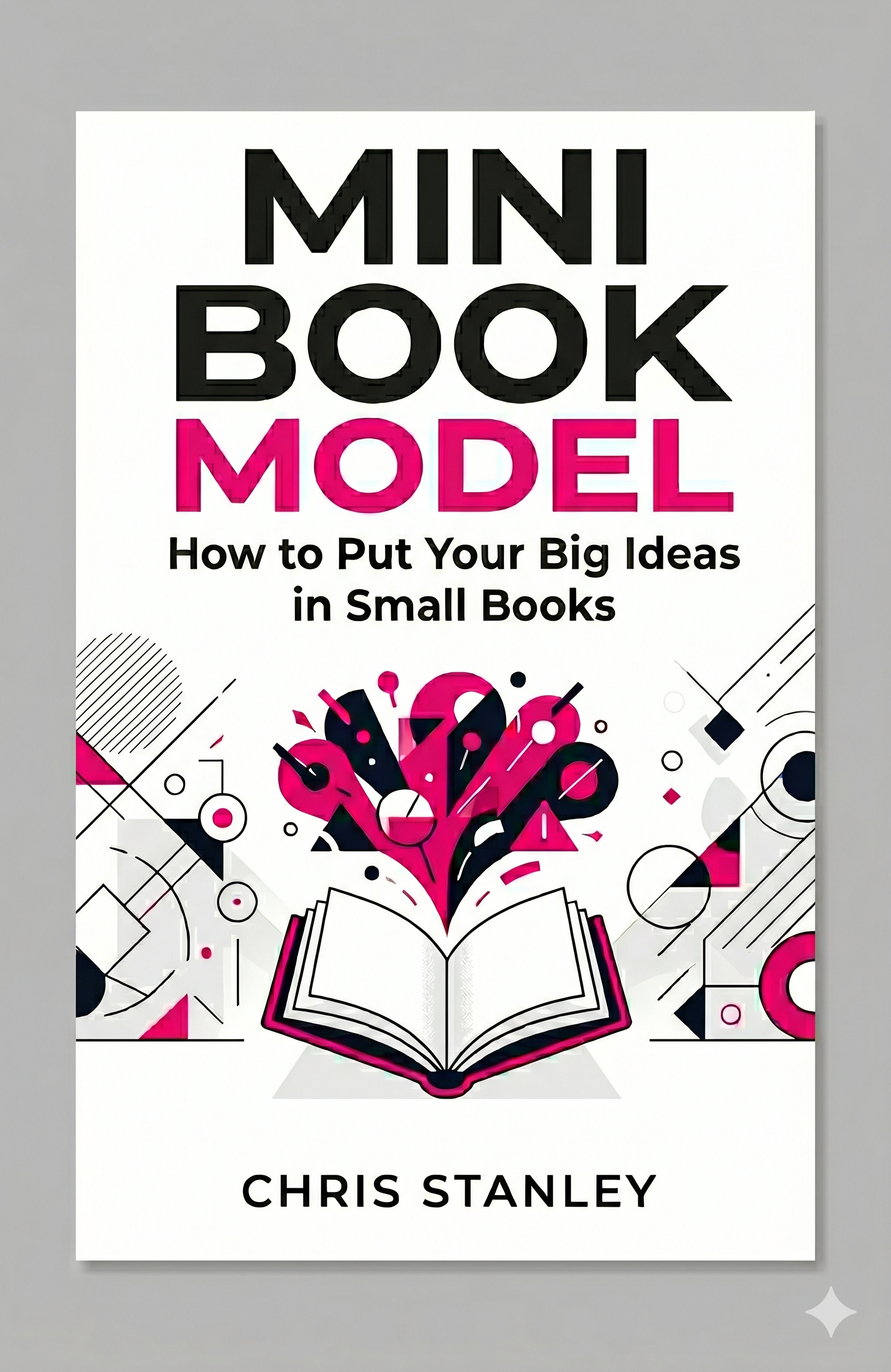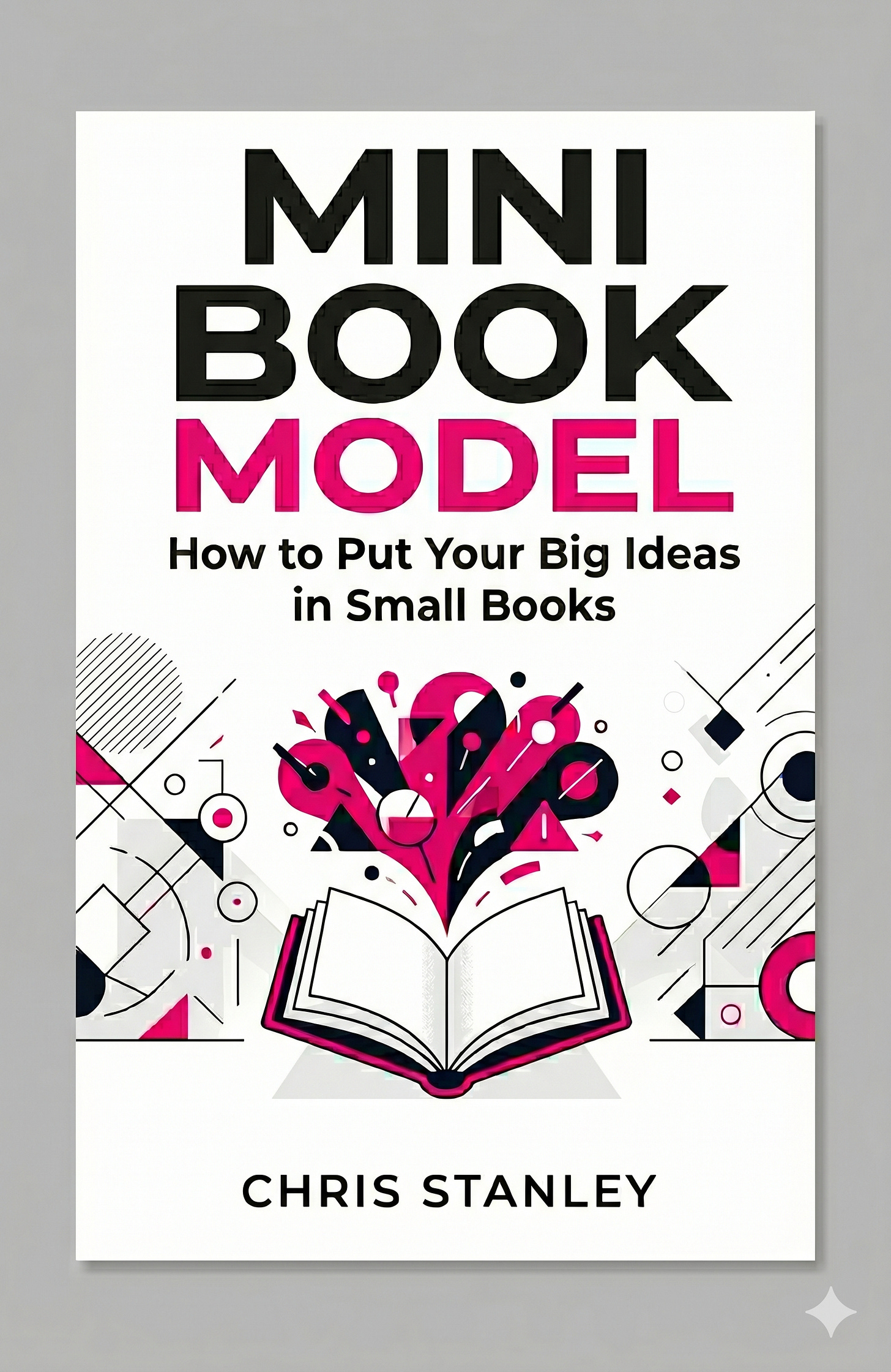 The pink is on brand. The little circular icons feel relevant to the Mini Book idea. The type is clean.