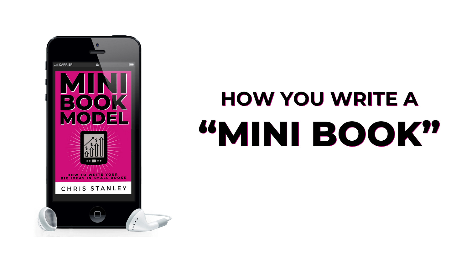 Revenue Writers PodcastMBM AUDIOBOOK: How You Write a Mini Book0:00Current time: 0:00 / Total time: -12:02-12:02Paid episodeThe full episode is only available to paid subscribers of Mini Book Revenue WritersSubscribe to listenMBM AUDIOBOOK: How You Write a Mini BookMini Book Model Chapter 4Chris StanleyAug 11, 2024∙ Paid2ShareChapter 1: What I Mean When I Say Mini BookChapter 2: Who Writes & Who Reads Mini Books?Listen to this episode with a 7-day free trialSubscribe to Mini Book Revenue Writers to listen to this post and get 7 days of free access to the full post archives.Start trialAlready a paid subscriber? Sign inRevenue Writers PodcastFor people who turn words into wealth.For people who turn words into wealth.SubscribeAuthorsChris StanleyRecent EpisodesREPLAY: Mini Book Outline WorkshopOct 8 • Chris StanleyBook Series: Why I’ll Take 333 Raving Fans Over 1,430 Readers Any DayAug 29 • Chris StanleyAudiobooks: Turning Your Voice into a $10K Audio OpportunityAug 21 • Chris StanleyThe First $10K Book Strategy (Audiobook + Guide Inside)Aug 7 • Chris StanleyThe Fork in the Road: Hobby Author or Revenue Writer? (Free Audiobook)Aug 4 • Chris StanleySmart Publishing Studio Has Landed & It's Built for Revenue WritersJul 29 • Chris StanleyHow to Know If Your Book Title Is Too BroadJul 11 • Chris StanleyThe Creator’s Advantage: Write Once, Ramble ForeverJul 8 • Chris Stanley