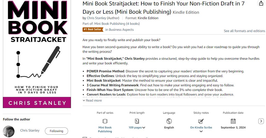 P.S. Super cool. Mini Book Straitjacket was #1 Best Seller for the past few days in different categories on Amazon! First time I’ve ever had that happen while the ebook was still in pre-order. Don’t forget you can read the book without waiting for it to release next week. Chapters are at the bottom of this email. If you do dive into some of the chapters just remember to leave a review, it’d mean so much to me.