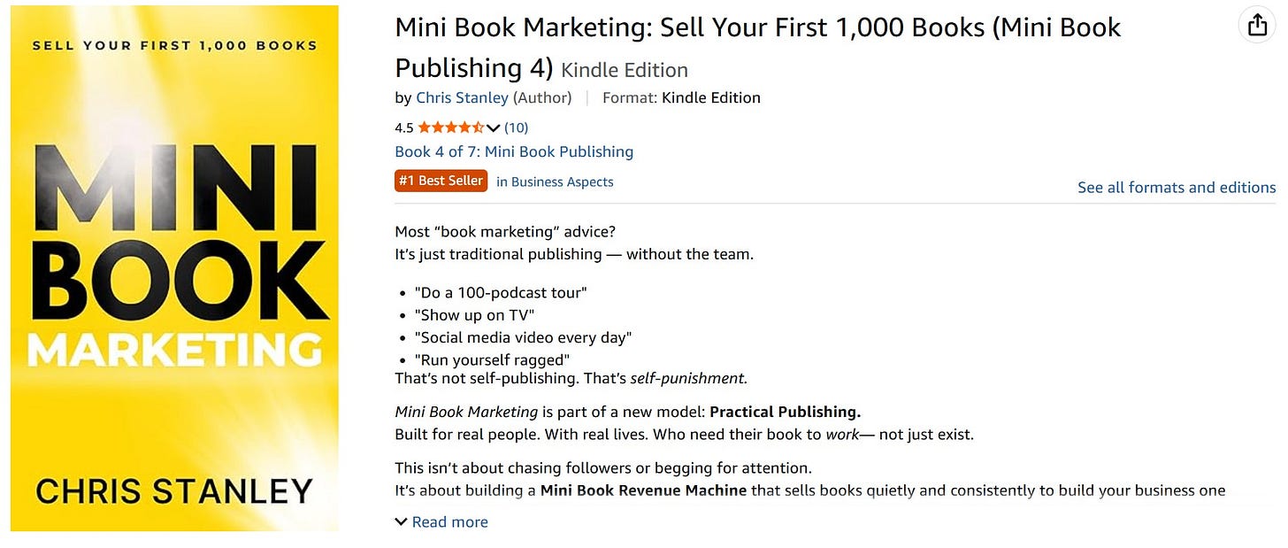 As I was writing these chapters, I spun up a new push for Mini Book Marketing. Dropped the price to $0.99 and ran my proven BookBub ads with a new headline.